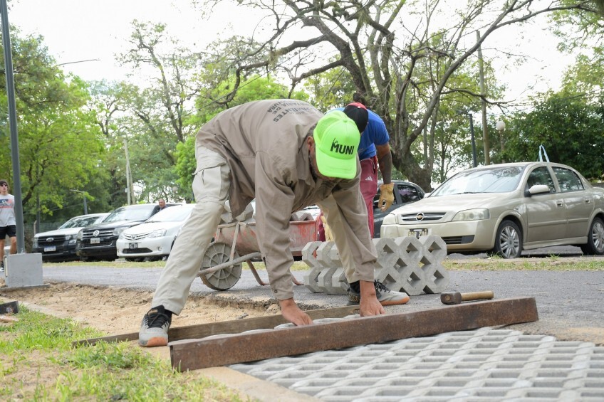 Las obras, que se ejecutan desde febrero, se complementan con la incorporación de mobiliario urbano, la construcción de rampas accesibles, la puesta en valor de juegos infantiles —incluyendo tareas de pintura y colocación de pisos de caucho— y la instalación de equipamiento para la práctica de calistenia.